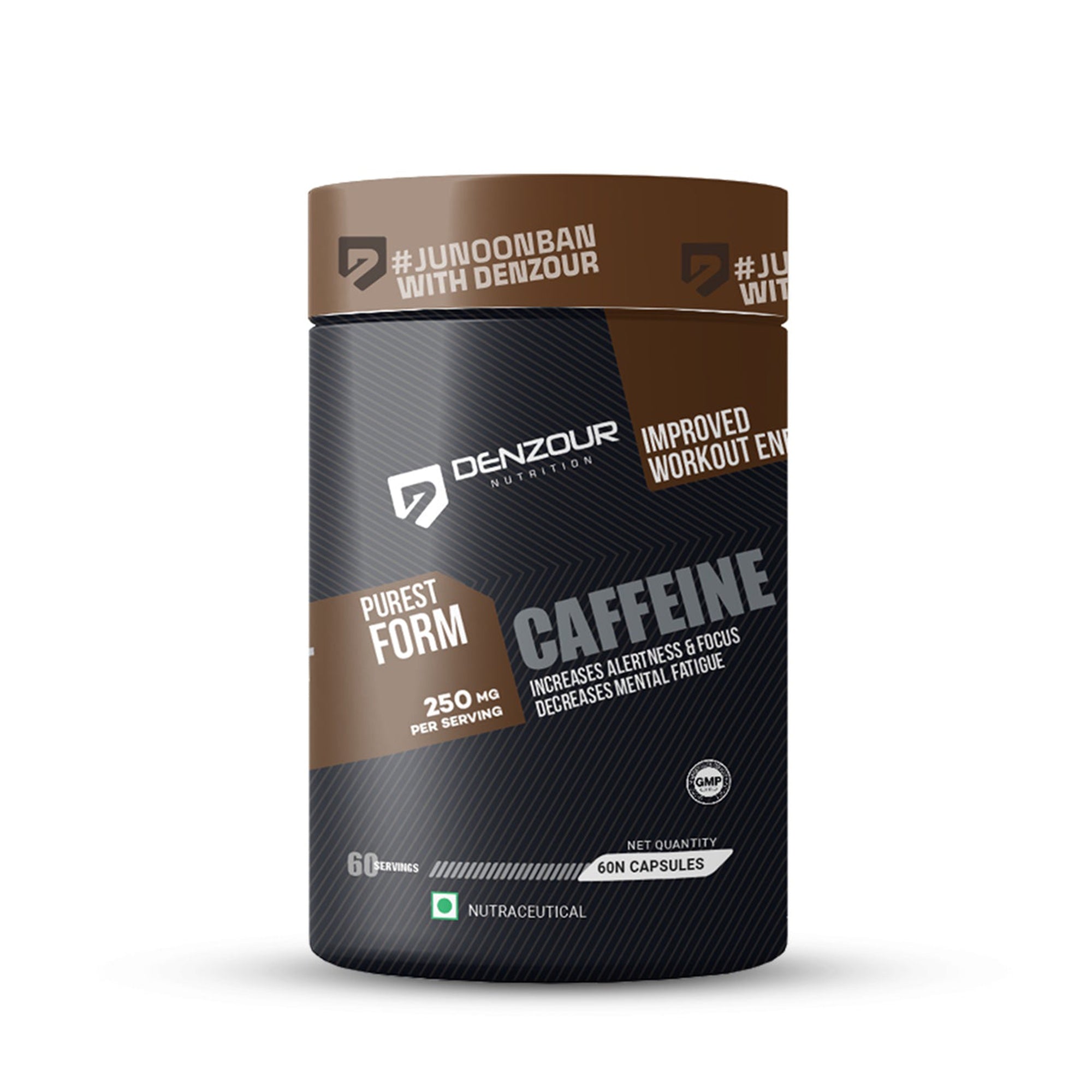 Denzour caffeine - 60 capsules | increases alertness & focus | 250mg per serving & purest form