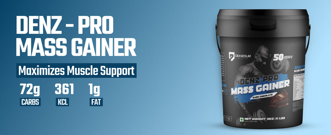 A complete all-in-one fitness stack designed to support your daily nutrition, workout routine, recovery, and supplement convenience. This combo includes Denz-Pro Mass Gainer 5kg, Creatine Monohydrate 250g, Glutamine 300g, Denz-Vita Multivitamin 60 Capsules, and a 650 ml Denzour Shaker. The mass gainer provides 361.84 kcal, 15g protein, and 72g carbohydrates per 100g serving, creatine provides 3g per scoop, glutamine provides 5g per scoop, and Denz-Vita delivers 25 vitamins and minerals in a 60-capsule bottle.