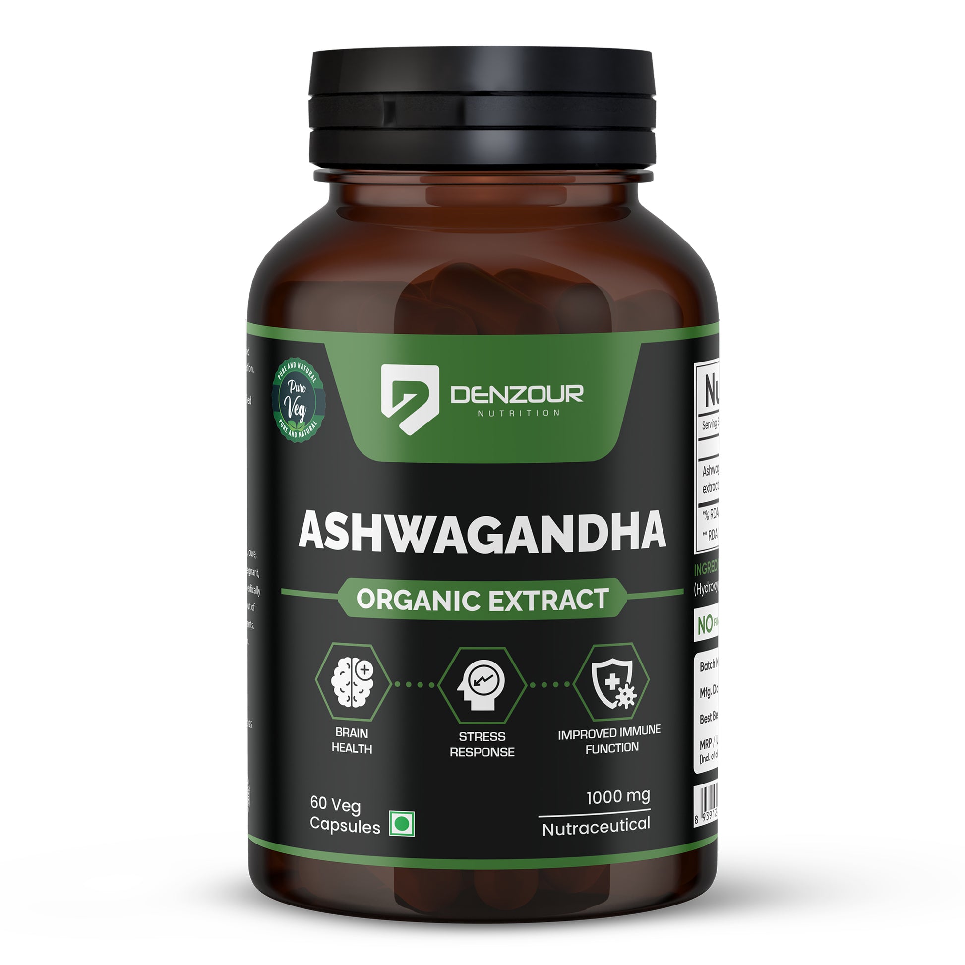 Denzour Nutrition Ashwagandha 1000mg capsules offer a powerful dose of this adaptogenic herb to support your body's response to stress and promote overall wellbeing. Ashwagandha is known for its ability to help the body adapt to stress and maintain a healthy balance.