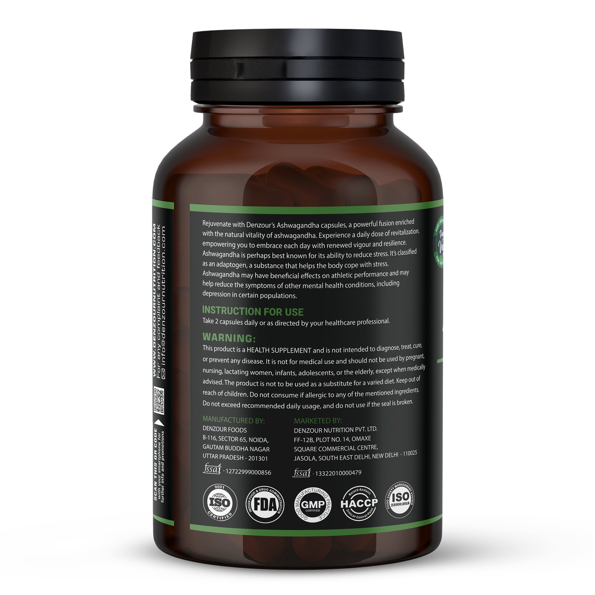 Denzour Nutrition Ashwagandha | Enhance Stress Resilience & Wellbeing - 60 Capsules