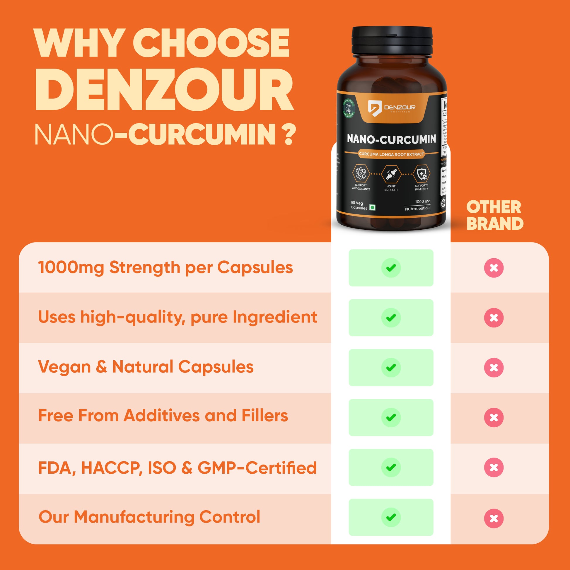 Denzour Nutrition Nano-Curcumin offers a powerful and bioavailable form of curcumin, the active ingredient in turmeric. Our nano-sized curcumin boasts a high potency of 95% curcuminoids for optimal absorption and enhanced benefits.