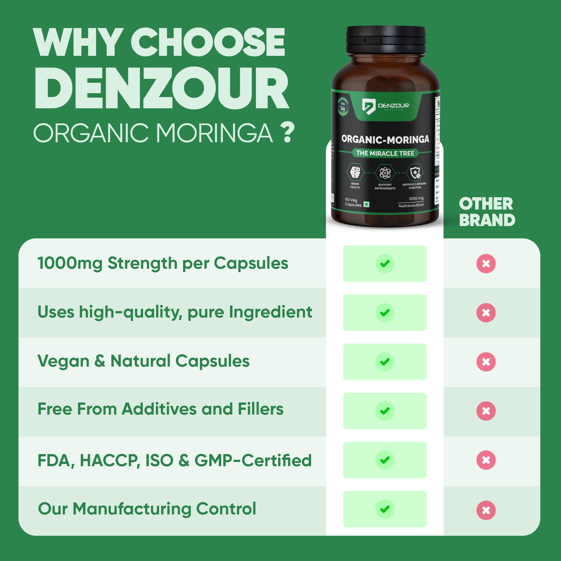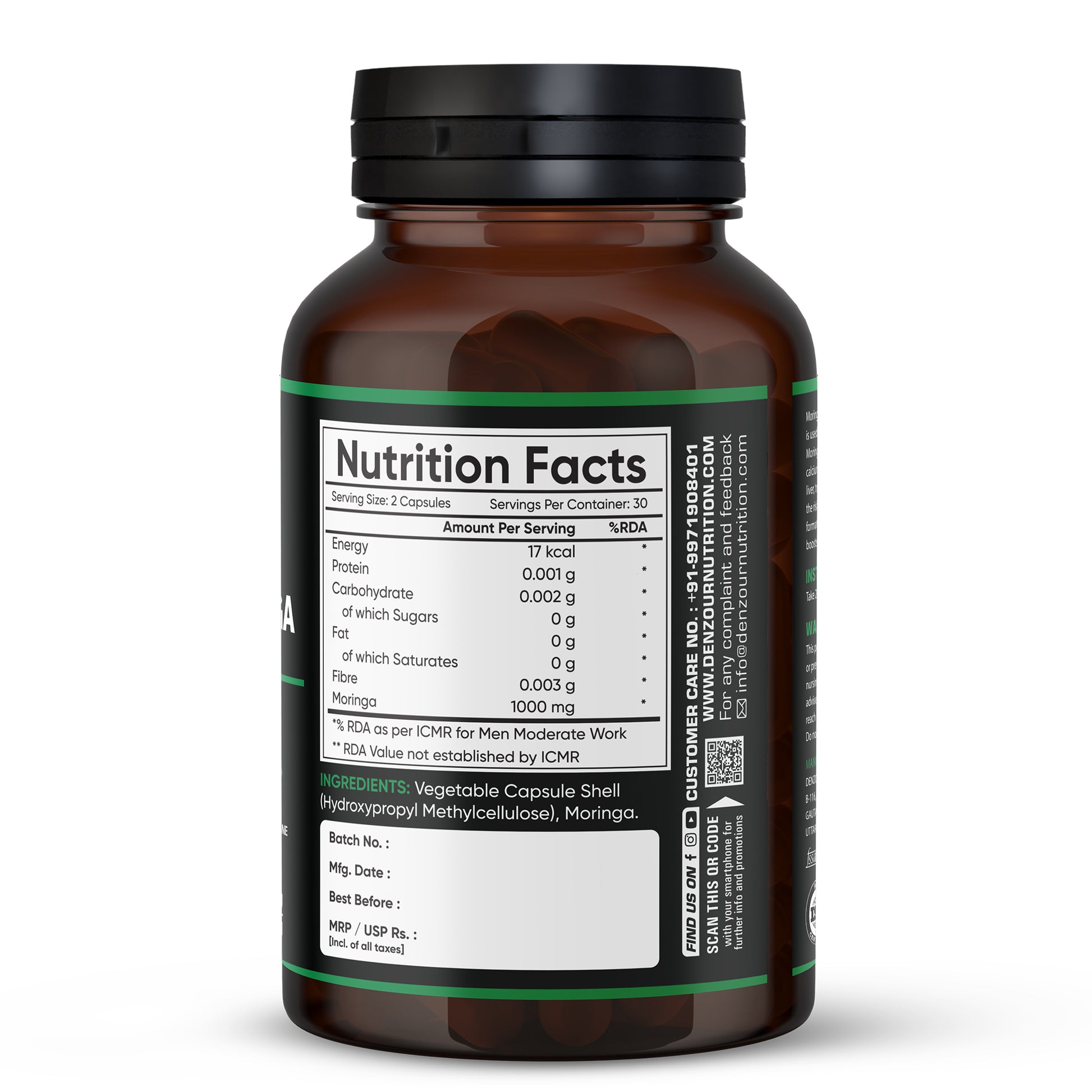 Denzour Nutrition Organic Moringa Capsule - Boost Energy & Immunity (60 Count)